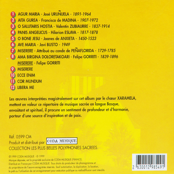 Xaramela interprète sur cet album des oeuvres du répertoire Sacré du Pays Basque.
